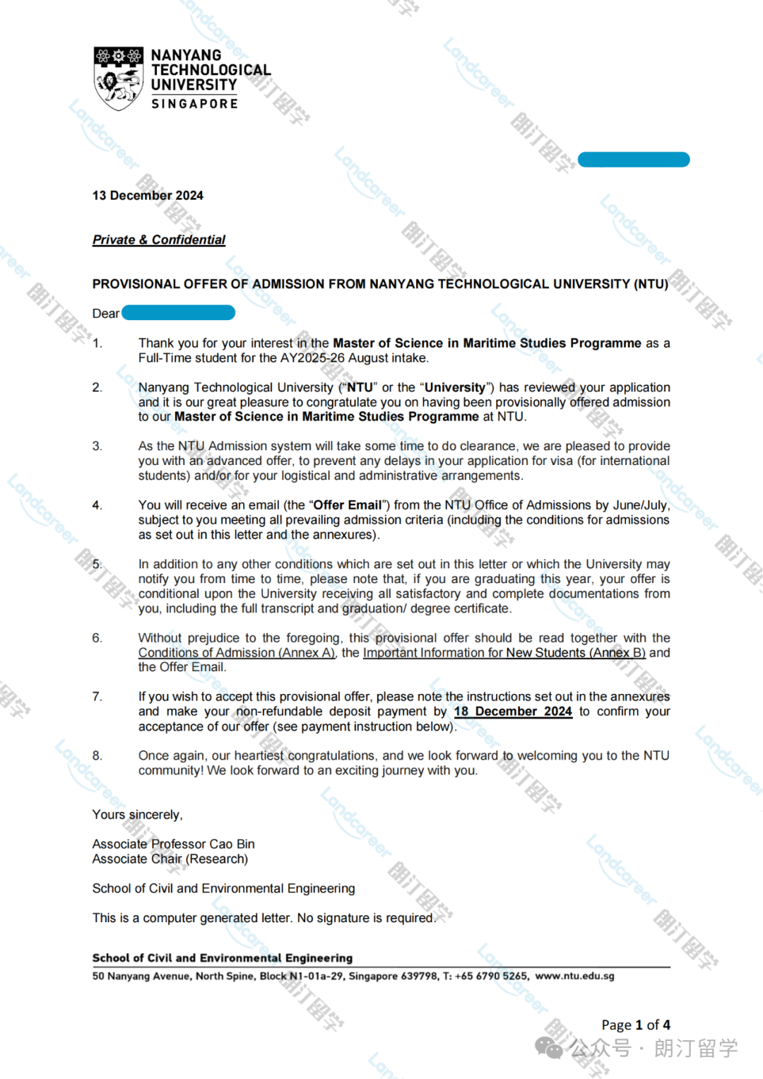 今天,我想和大家分享我的申请故事,特别感谢朗汀留学一路的鼎力相助,同时揭秘一些“上岸”南洋理工的干货经验。如果你也是海事相关专业的学生,或者正纠结留学申请,这篇绝对值得收藏!