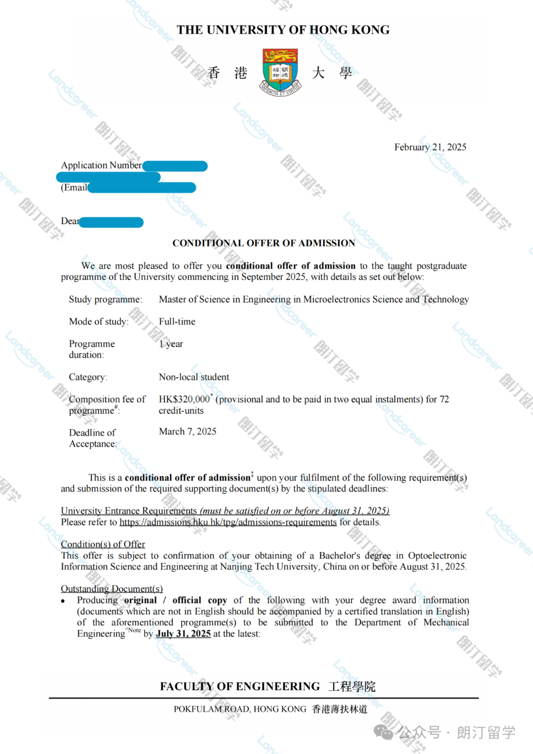 还记得那天打开邮箱,看到"Congratulations from HKU"时,我差点把手机摔了!作为一个GPA80+的"普通玩家",我本科在南工大光电专业,成绩不算顶尖(均分82左右),科研经历也平平。之前总听人说港大只收"学霸",GPA没90+别想进门,我一度以为自己没戏了。但朗汀留学的老师一句话点醒了我:"背景普通?靠策略照样能赢!"事实证明,他们是对的——我的offer就是最好的证明!